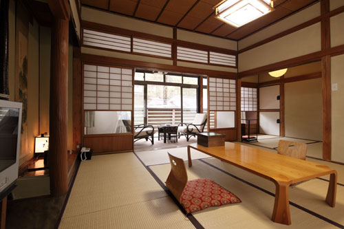 リピーターのお客様から一番人気の2名様向けのお部屋です。川と日本庭園の両方に面しており、テラスもついております。広々とした風通しの良いお部屋で、ごゆっくりとお過ごしいただけます。※全客室禁煙です