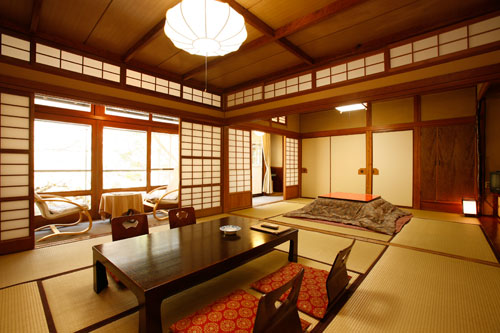 日本庭園に面した2間続きの広いお部屋です。グループや複数世代のご家族でのご旅行にオススメのお部屋となっております。縁側の椅子に腰掛け、四季折々に違う表情を見せる庭園を存分にお楽しみ頂けます。※全客室禁煙です